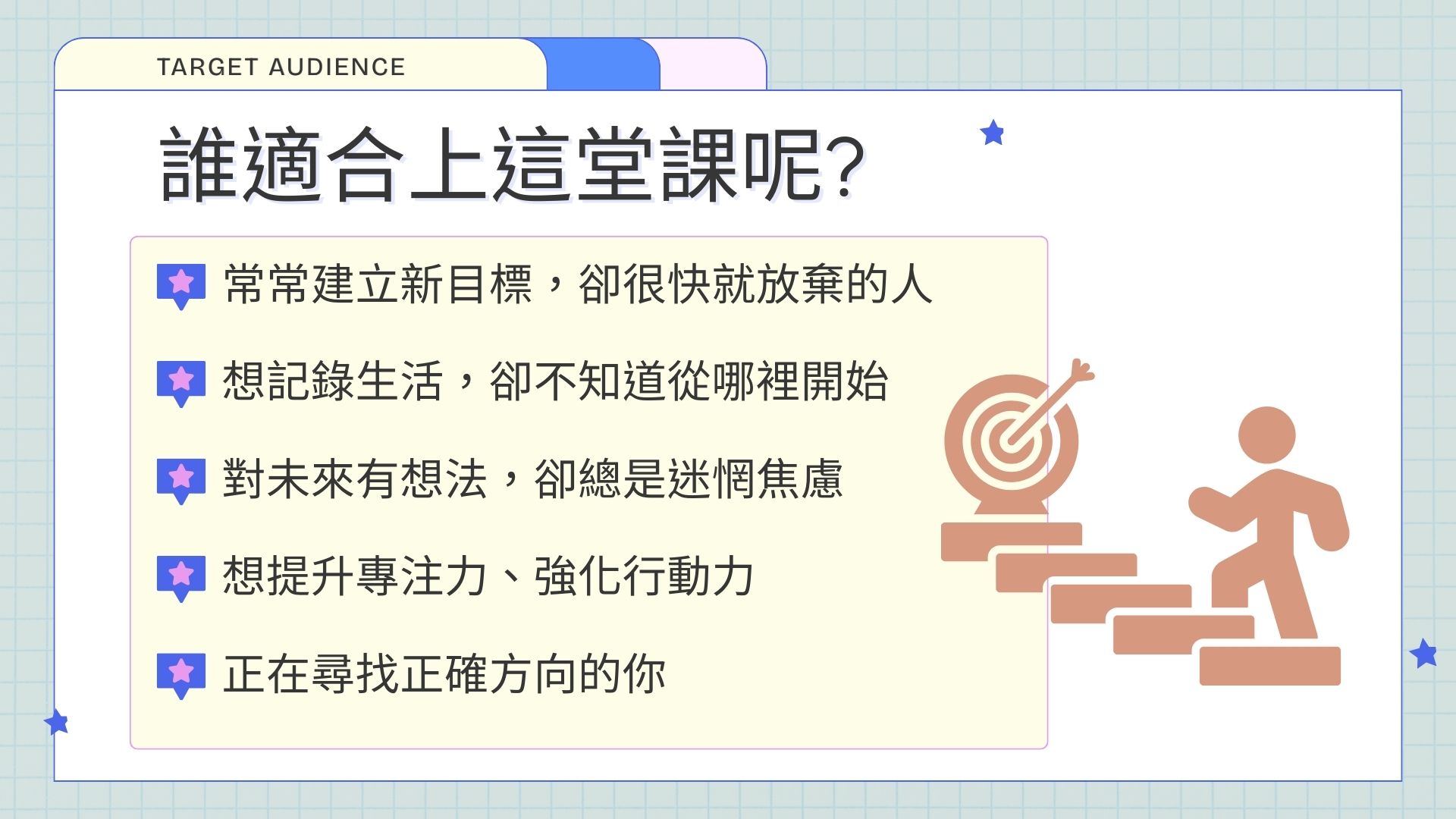 對於這堂課的期待?(或你現在的困擾是甚麼):